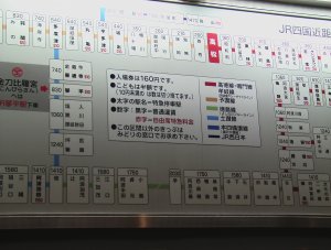 When you first take a train in Japan it can be a bit scary the first time if you can’t speak or read Japanese. I will try to give you a basic explaination of how to use the train in Japan. Once you do it once or twice you will be fine! First you must find out what train you want to take and how much it will cost. Trains stations “eki” 駅 will have a big schedule near the ticket machines that show the trains route and how much it will cost. Also close by there will be a time chart showing you the time of the trains. The picture on the left is an example of the route schedule that shows you the prices.